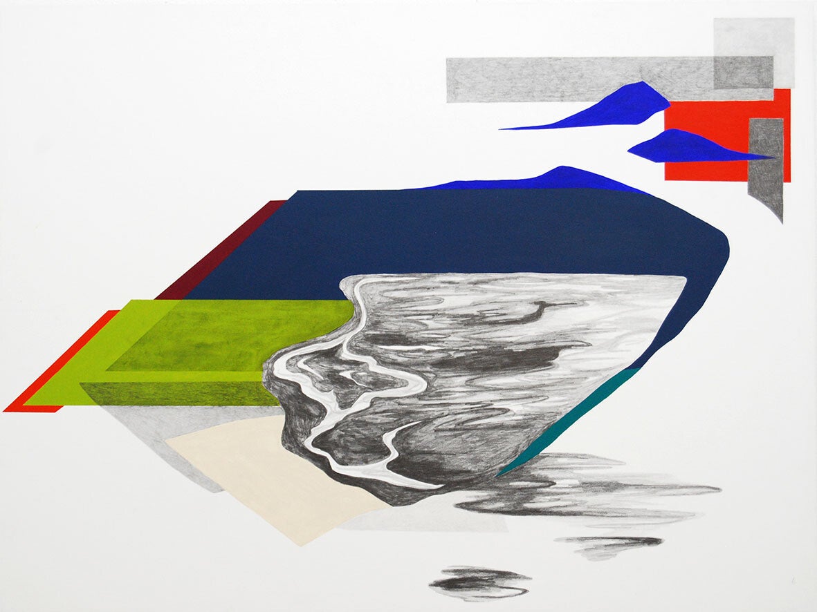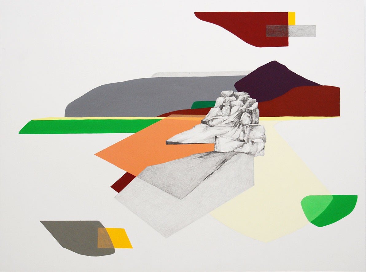 Geological Happiness - It's all a question of perspective (Drôme) | 2024 | Acryl, graphit, color pencil on canvas | 84 x 120 cm